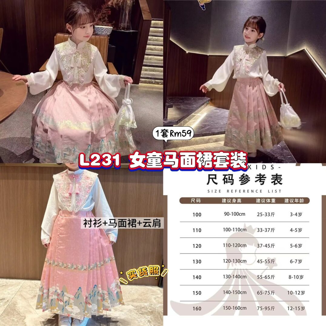 L231 女童马面裙套装