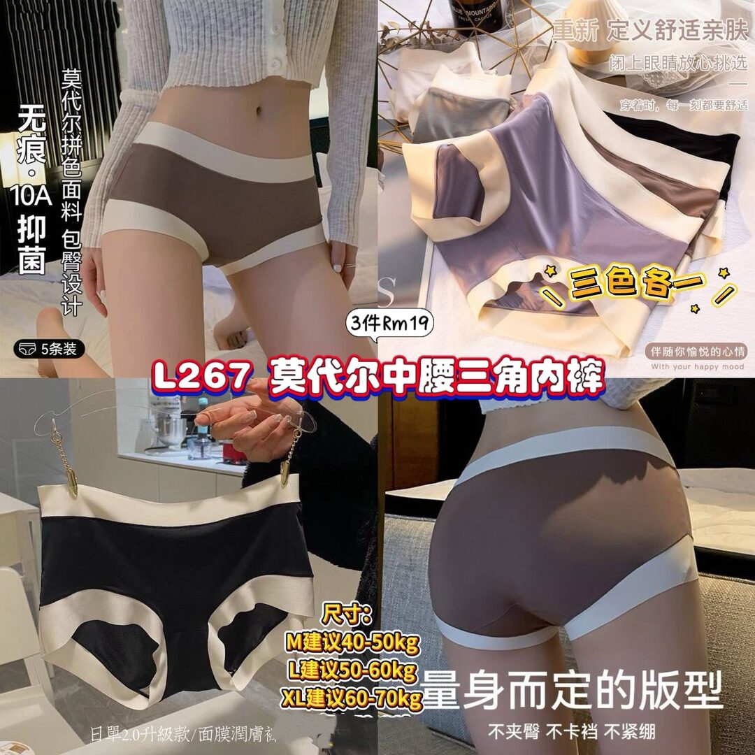 L267 莫代尔中腰三角内裤 (3色各1)