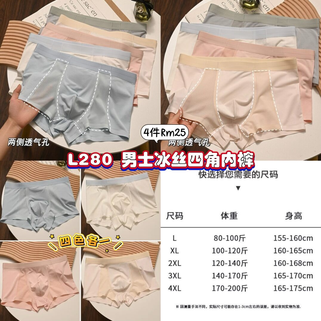 Be the first to review “L280 男士冰丝四角内裤 (4色各1)” Cancel reply