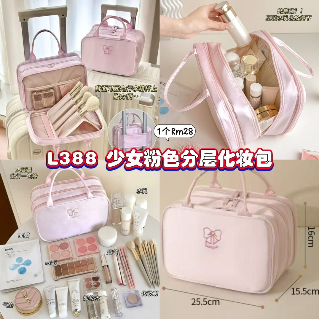 L388 少女粉色分层化妆包