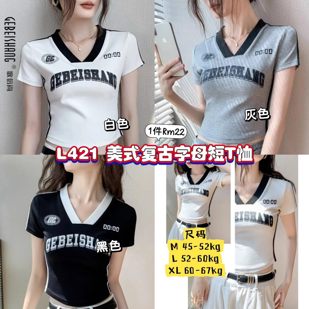 L421 美式复古字母短T恤