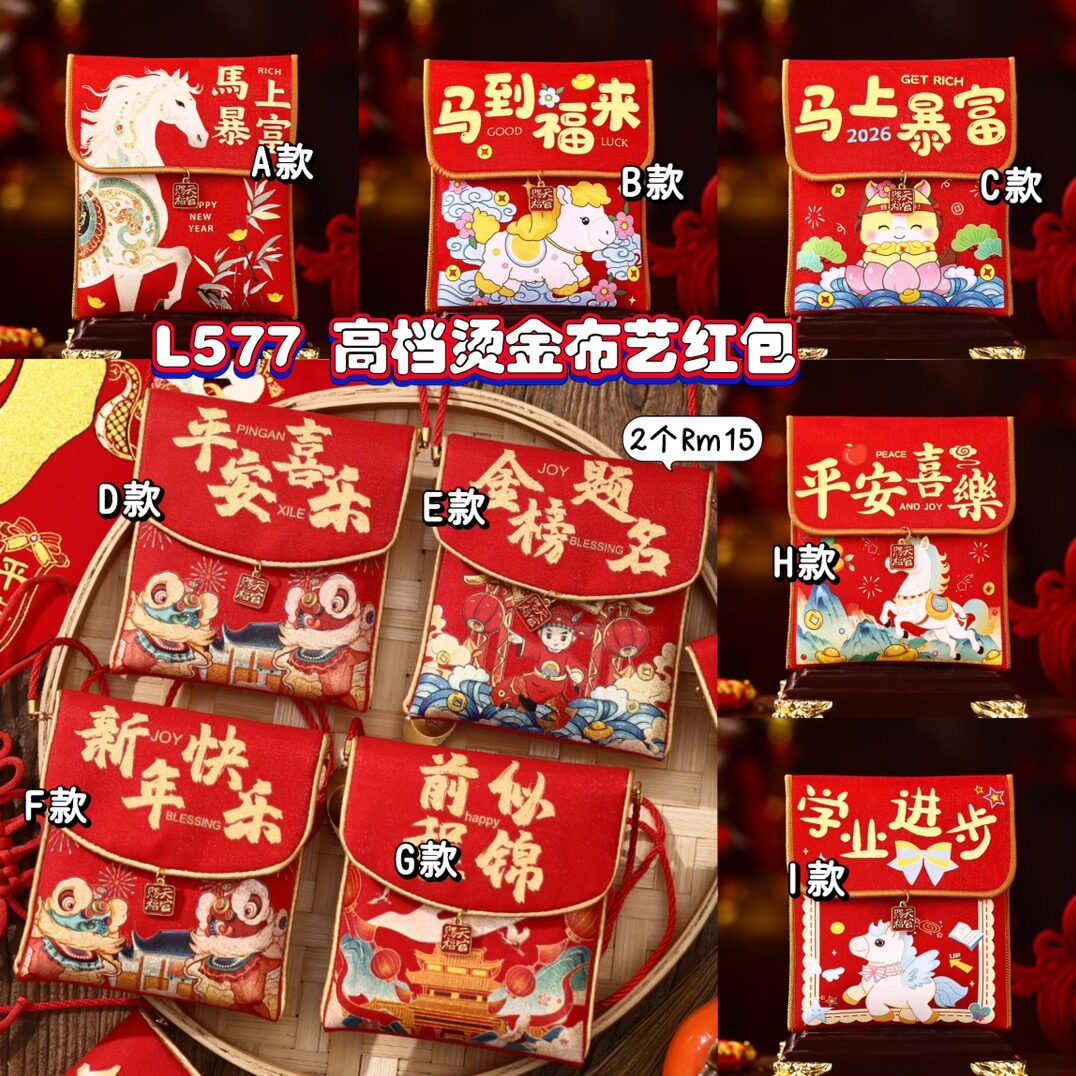 L577 高档烫金布艺红包 (2个) *如款式缺货随机发