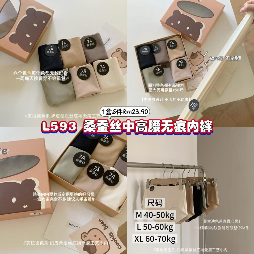 L593 桑蚕丝中高腰无痕内裤 (1盒6件)