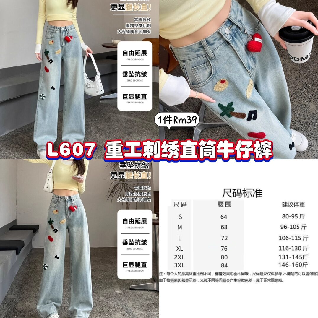 L607 重工刺绣直筒牛仔裤