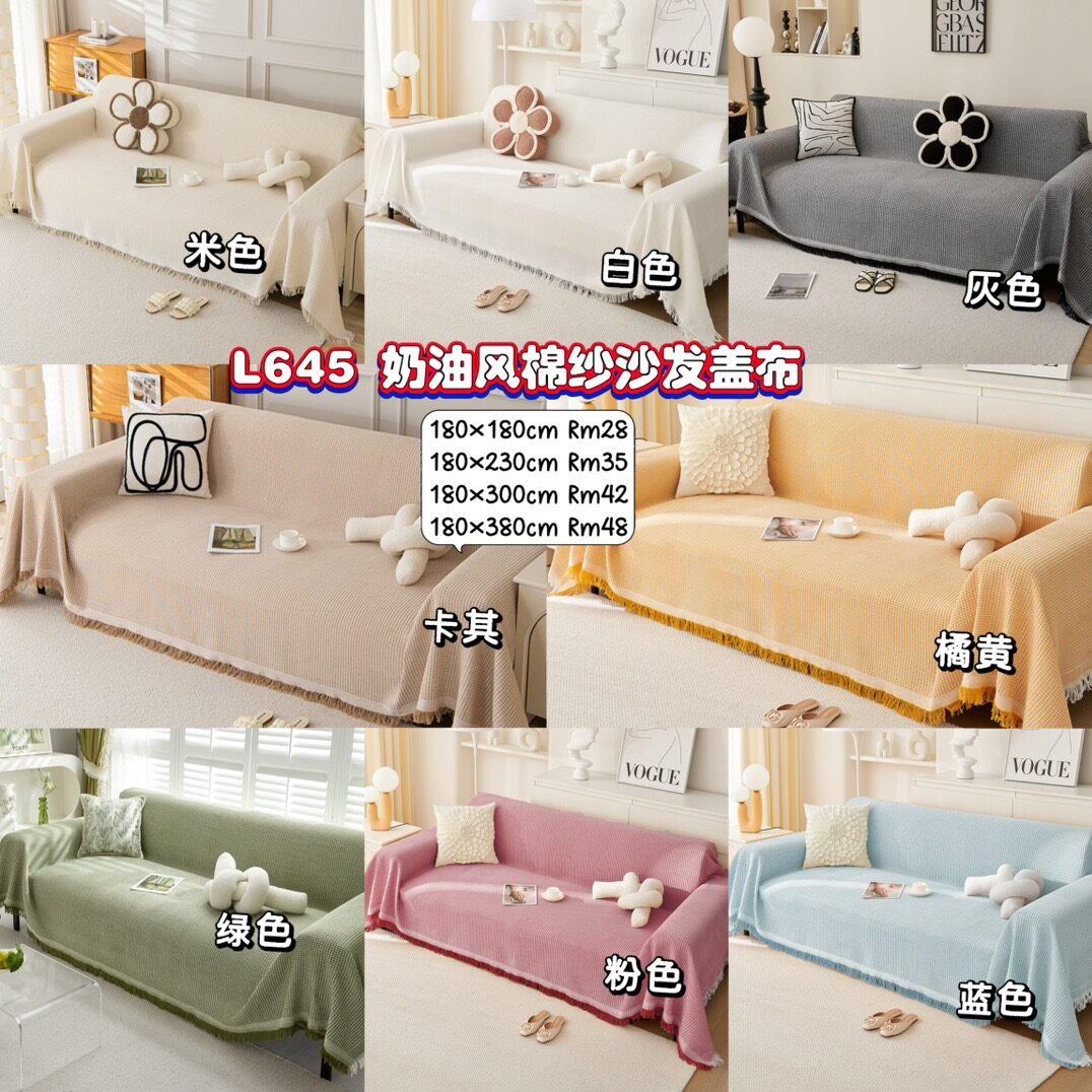 L645奶油风棉纱沙发盖布 (180×180cm)