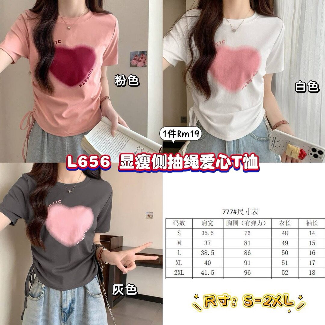 L656 显瘦侧抽绳爱心T恤