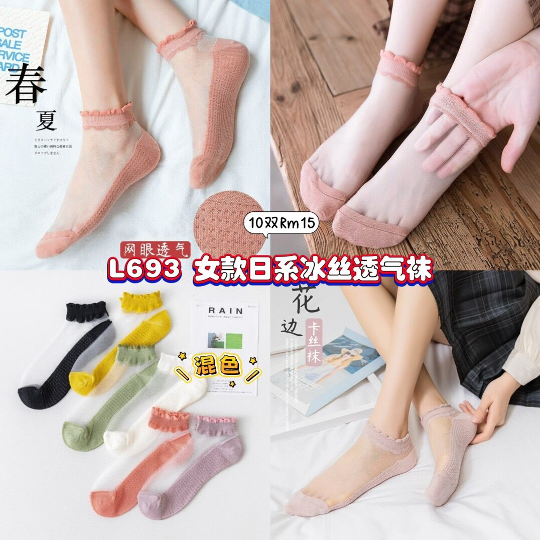 L693 女款日系冰丝透气袜 (10双混色)